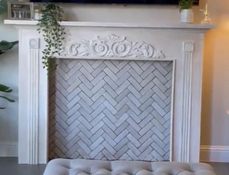 This mantel is handcrafted per order primed 48 x 42 x 1 1/2” inside opening (custom sizes also available) All moldings, flute and appliqué are solid poplar with quality materials for the header, shelf and legs. Primed ready to paint. Instructions and hardware are included MADE IN THE USA