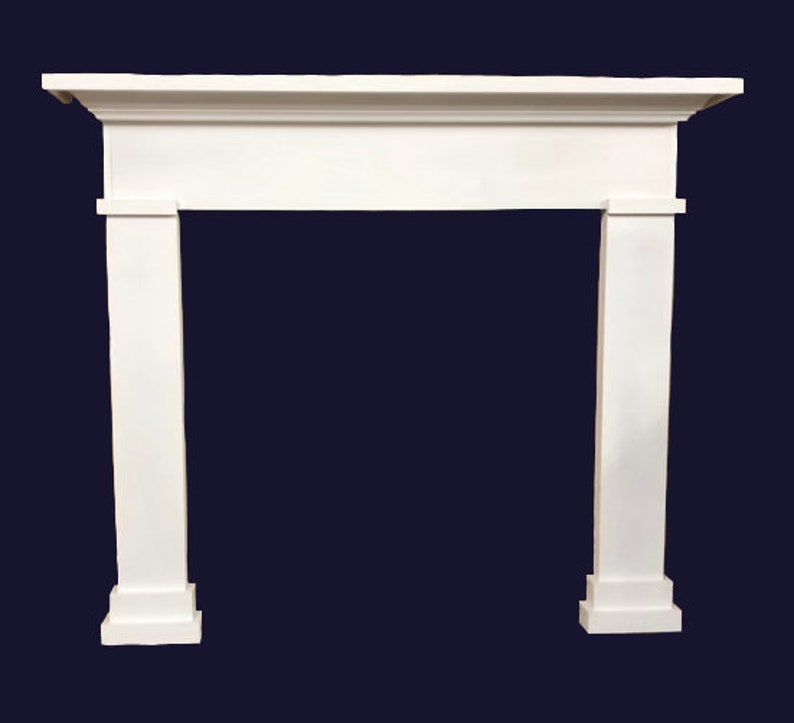 This mantel is primed 48 x 42 x 1 1/2 inside opening (custom sizes also available ) All moldings are solid poplar and made with quality materials for the header, shelf and legs. Ready to paint. Instructions and hardware included. Usually ships within 3-5 days of payment.